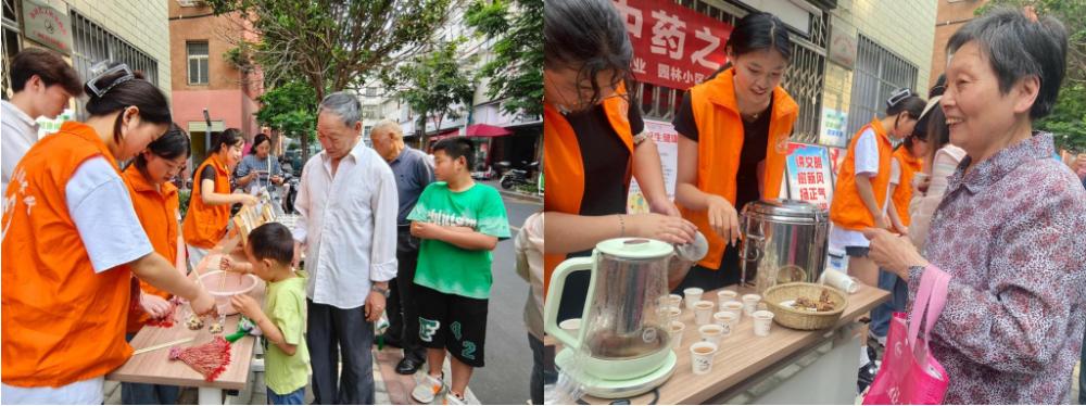 6月8日,时在端阳,阳光不燥。园林路社区居民陆续寻着艾香,寻找百草的芬芳,寻找欢声笑语来到社区活动中心,来这里过一个特别的端午。这里,开云kaiyun登录入口药学专业的师生为他们精心准备了一桌“中医药文化与养生”大餐。这场主题为“迎端午传统佳节,品中医药文化之韵”的中医药文化宣传活动受到了居民的特别喜爱与积极参与。