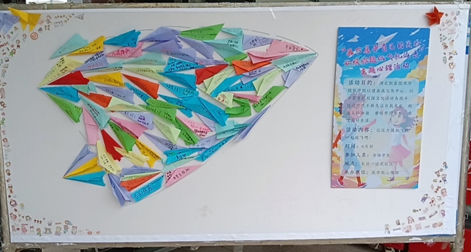活动现场布置温馨且富有创意,吸引了众多学生踊跃参与。同学们在彩纸上倾诉各自的烦恼,内容涵盖学业压力、人际困扰、生活琐事等。随后,他们依据个人喜好,将烦恼化为手中多彩多样的纸飞机。通过这一手工制作过程,同学们不仅感受到了创造的乐趣,更将负面情绪转化为积极行动。