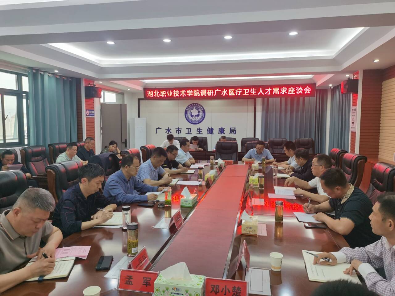 调研座谈会上,广水市卫健局及医疗机构的同志先后介绍了本单位的基本情况和人才需求现状,表达了与学校进一步合作的意愿。与会同志还对学校的人才培养提出了中肯的意见和建议。
