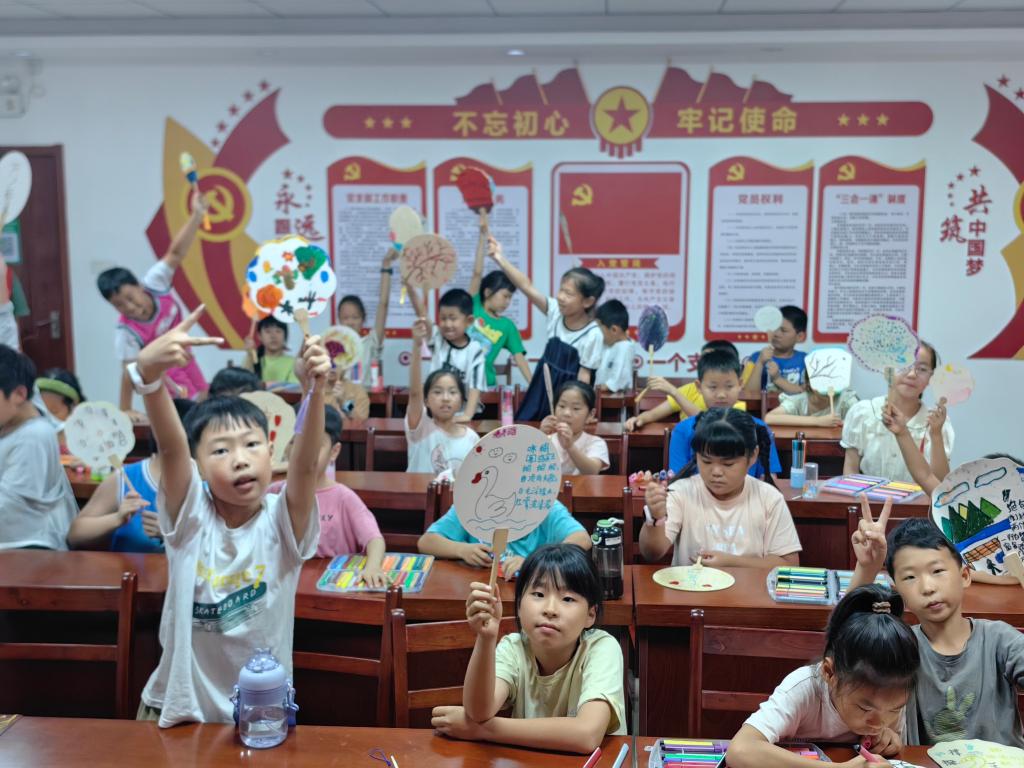 开营首日,一场别开生面的手绘扇面活动拉开了夏令营精彩课程的序幕。志愿者们首先带领孩子们走进扇面文化的历史长河,感受其独特的艺术魅力。随后,孩子们拿起画笔,在扇面上自由创作,将心中的美好愿景与独特想象化为生动的画面。从诗意盎然的自然风景到趣味横生的生活场景,每一幅作品都承载着孩子们纯真的梦想与真挚的情感,现场洋溢着浓厚的艺术氛围与无限的创意活力。