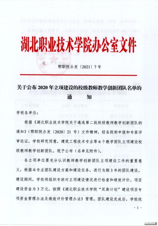 关于公布2020年立项建设的校级教师教学创新团队名单的通知