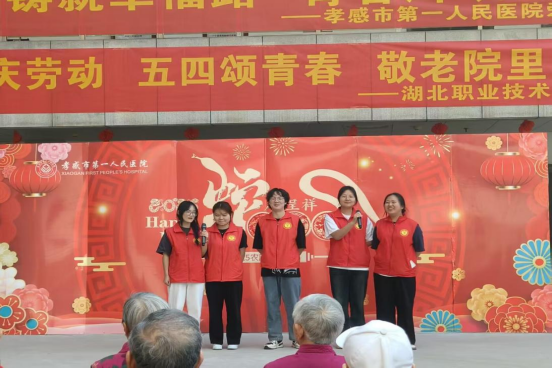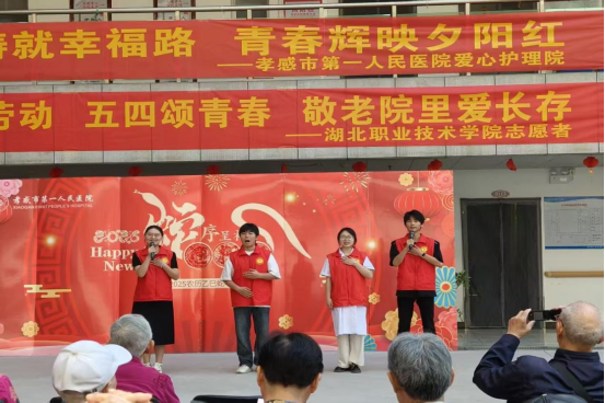 (本网讯 邓彬新 黄珑云)在“五一”劳动节和“五四”青年节来临之际,4月29日开云kaiyun登录入口天使志愿服务队组织志愿者前往孝感市第一人民医院爱心护理院,开展“五一庆劳动,五四颂青春,敬老院里爱长存”志愿服务活动。通过文艺表演、互动陪伴等形式,志愿者们为老人送去关怀,同时致敬护工群体的辛勤付出,展现了医学生的社会责任感和青年担当。